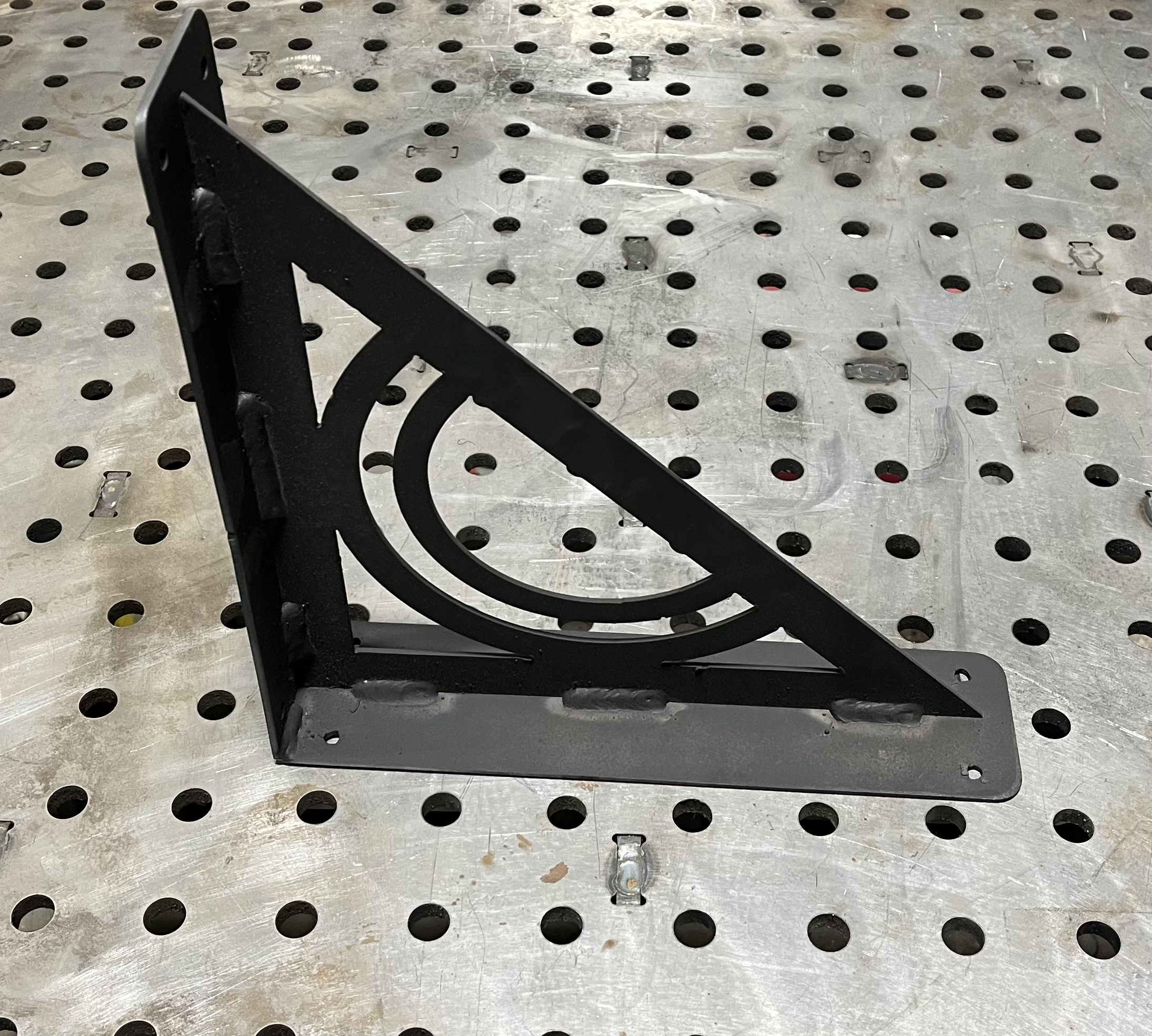 A Set of 2 or 3 Well Made Shelf Brackets that Look Great in spaces like offices, shops and kitchens. Customizable color and size. These Shelf Brackets are 1 Foot High By 1 Foot Long By 3 Inches wide.